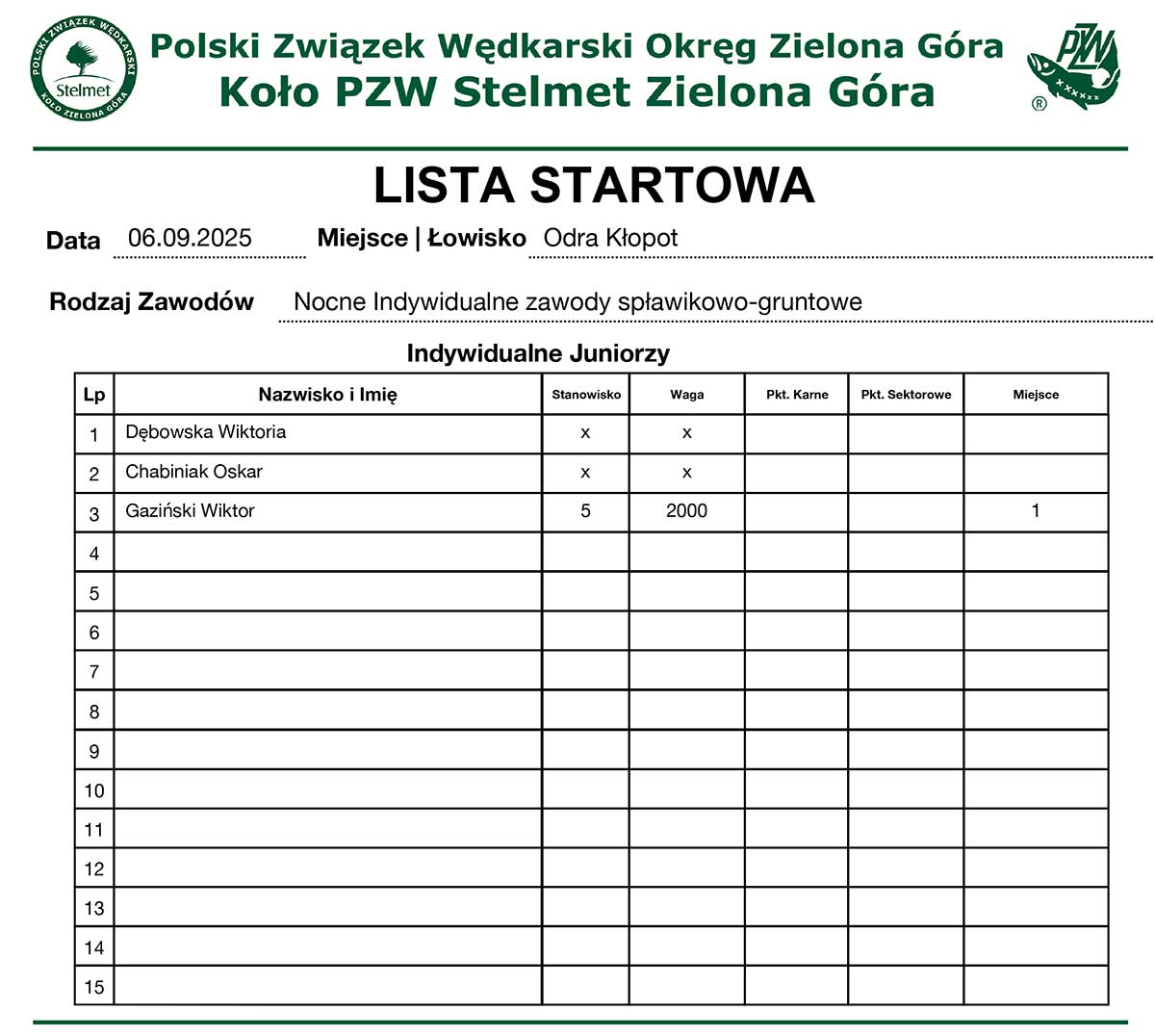 1 Spławikowe GPP U-15 2023