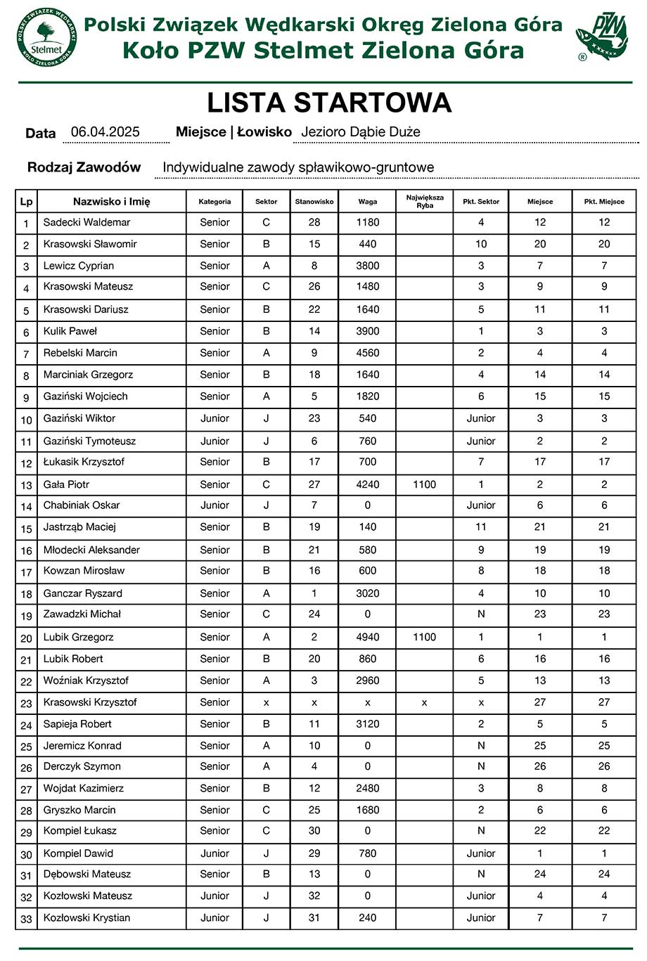 PZW Stelmet - Zawody Jezioro Dąbie Duże – 01.10.2023